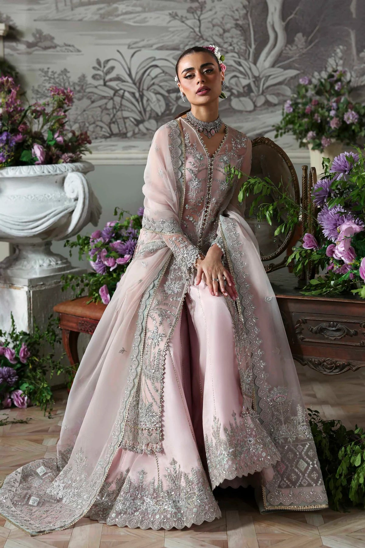 - Organza Embroidered Hand Embellished Sleeves 26"