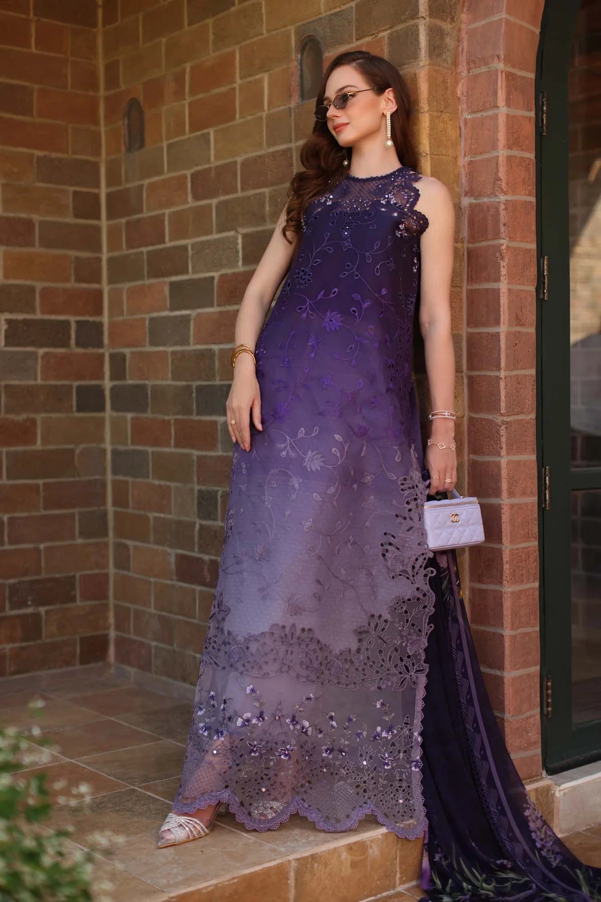 Digital printed schiffli embroidered lawn front