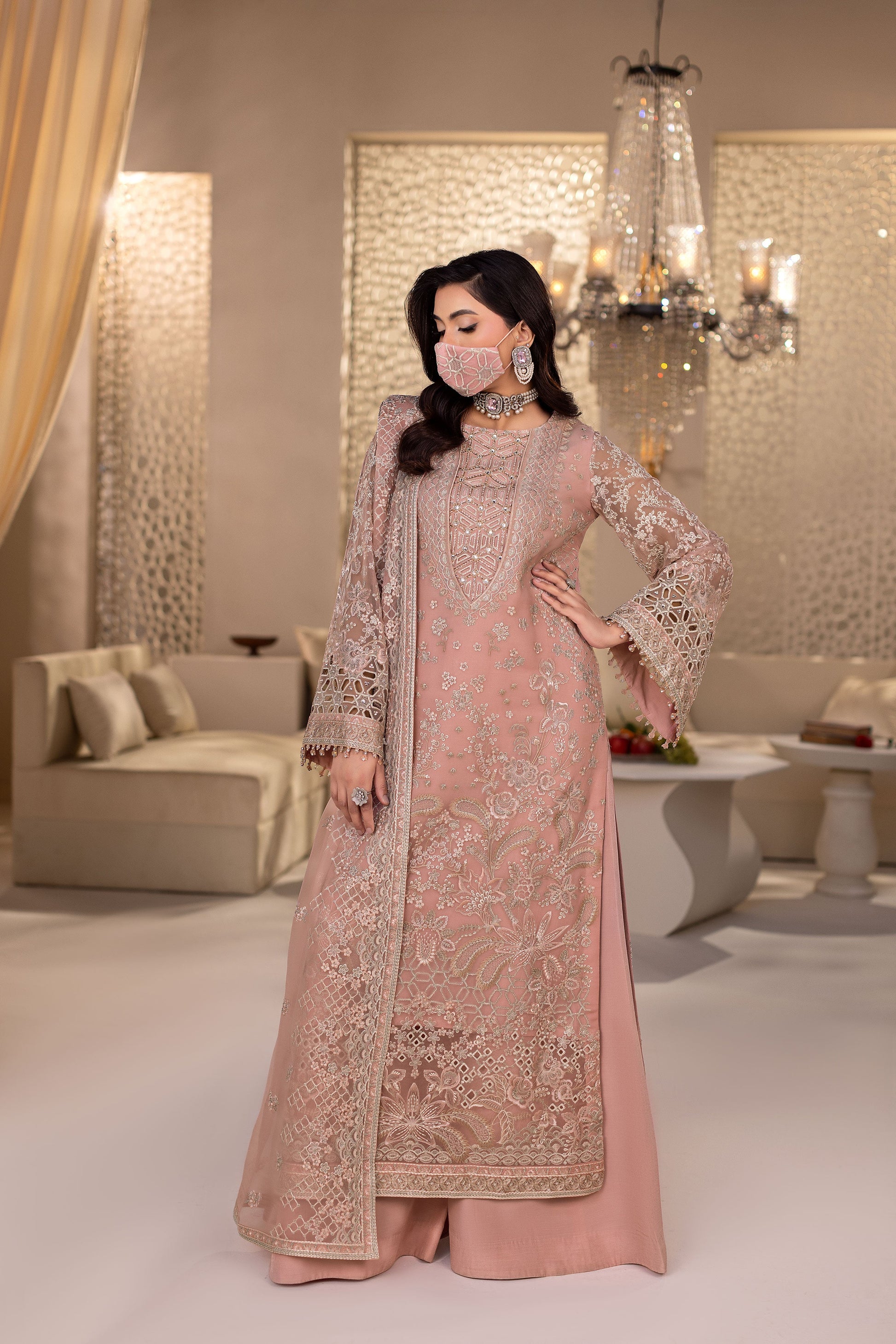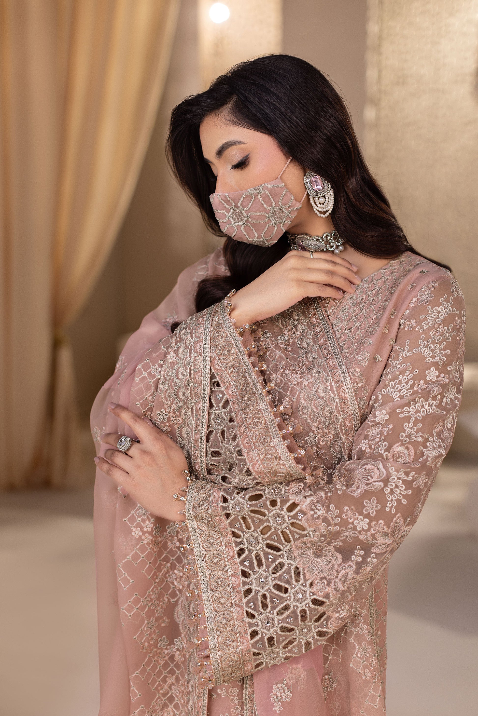 - Embroidered Chiffon Sleeves