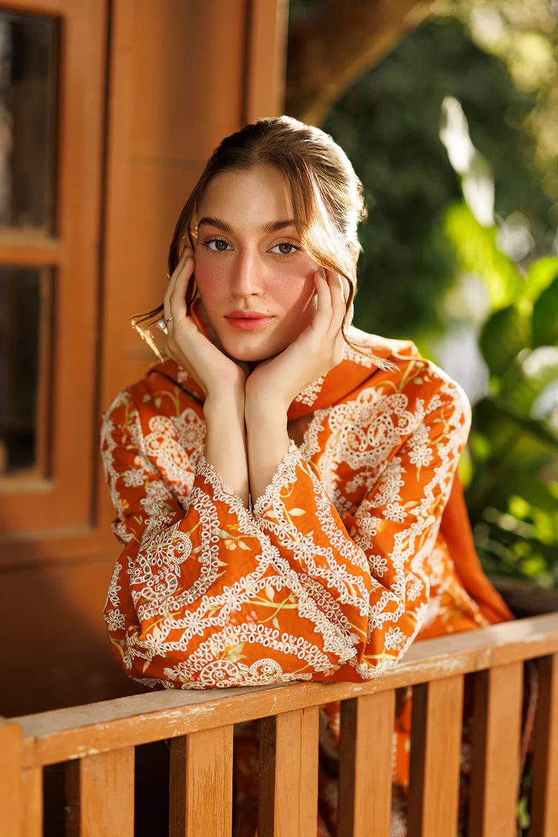 PRINTED LAWN RUST DIGITAL PRINTED EMBROIDERED FRONT+BACK BORDER A 1.97 M