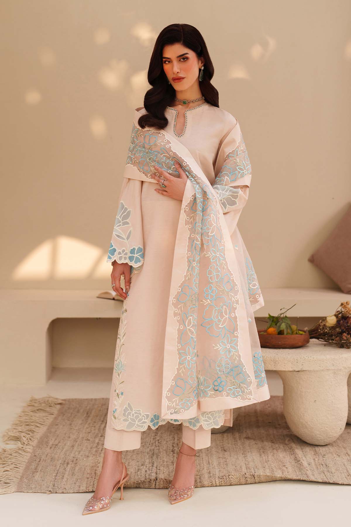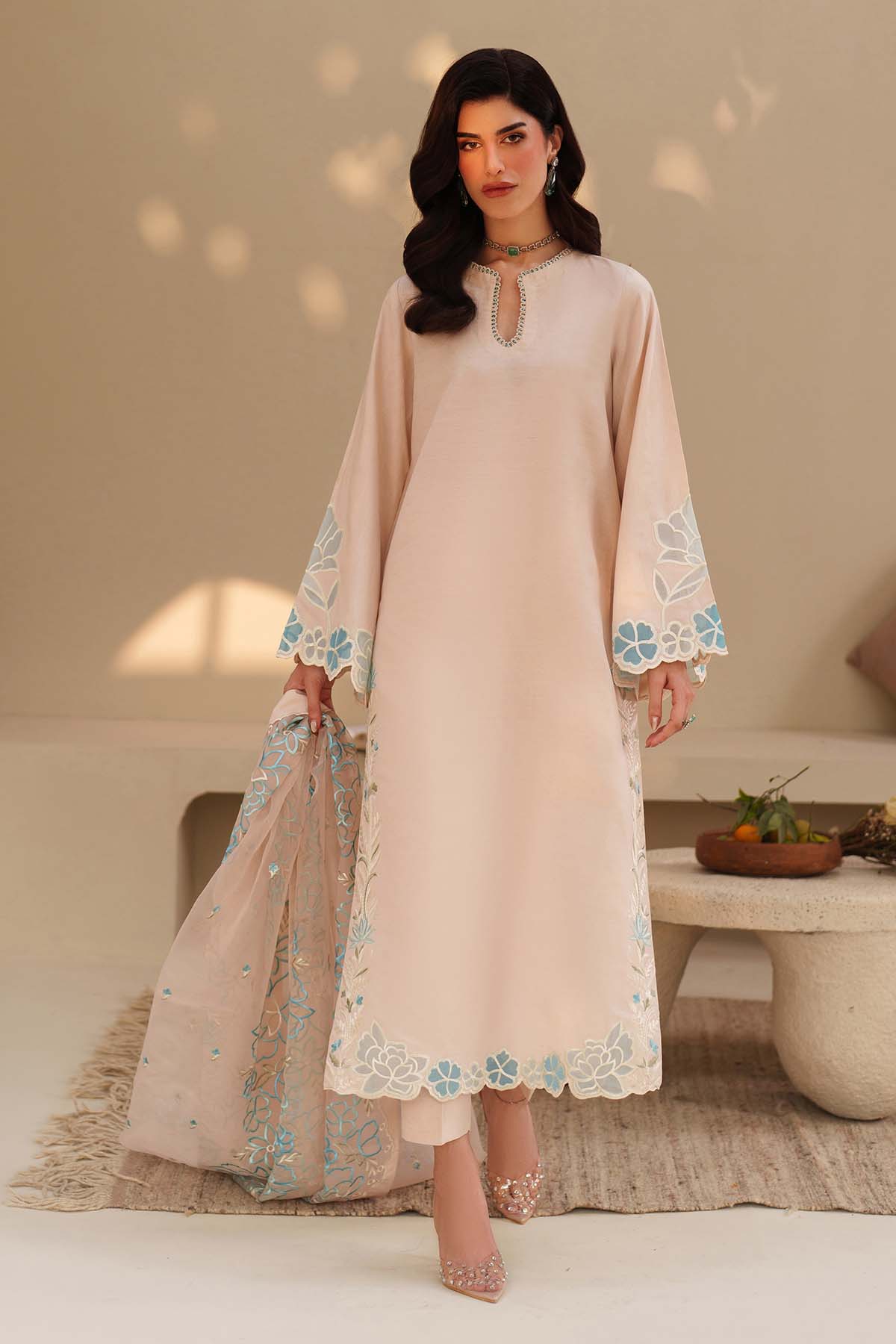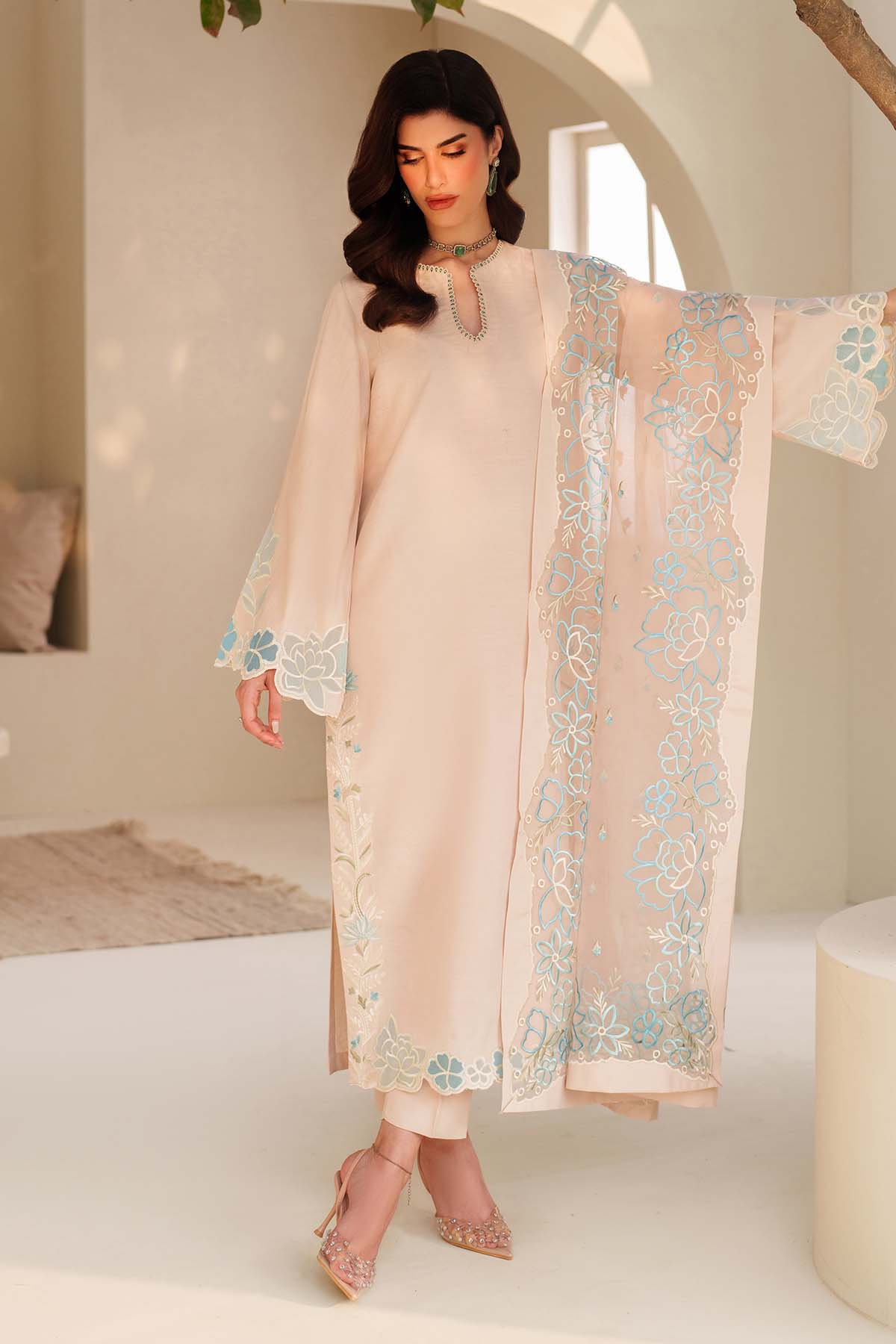 - Embroidered Raw Silk With Applique