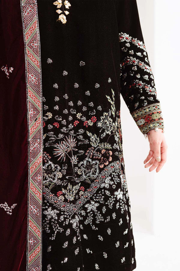 - Embroidered Contrast Velvet Shawl (Semi Stitched)