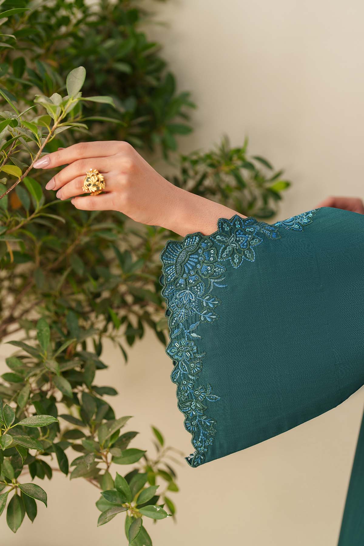- Sequins Embroidered Raw Silk