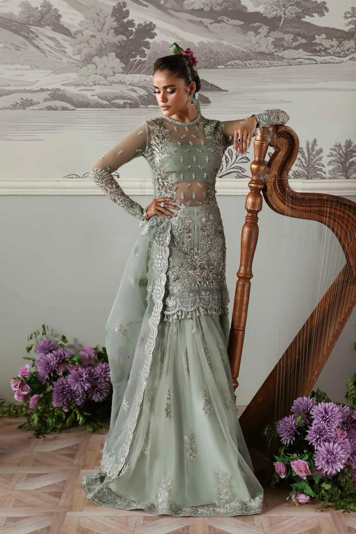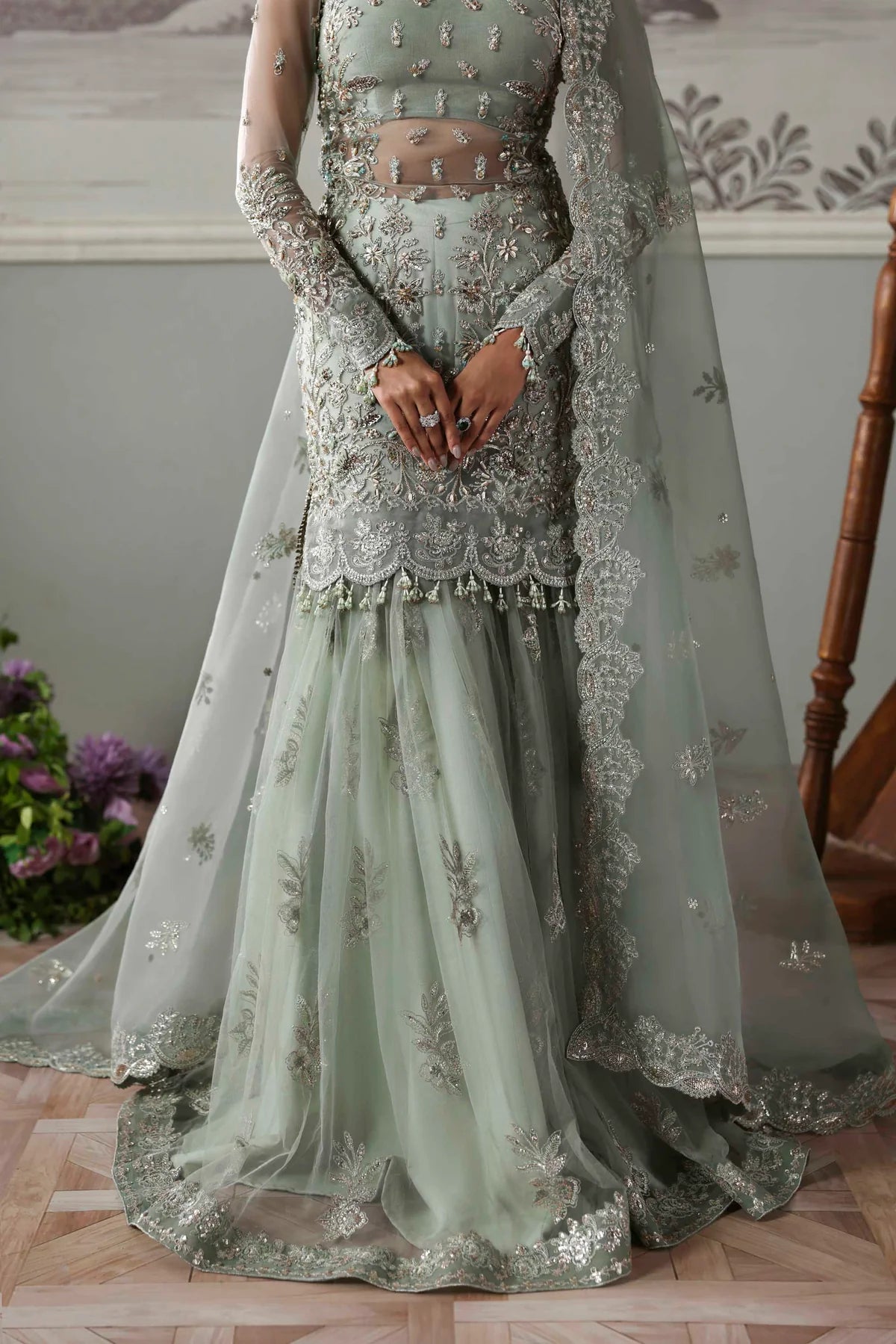 - Net Embroidered Hand Embellished Front 30"