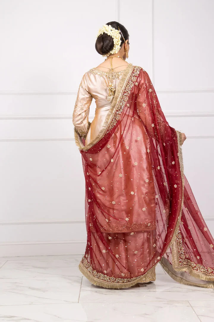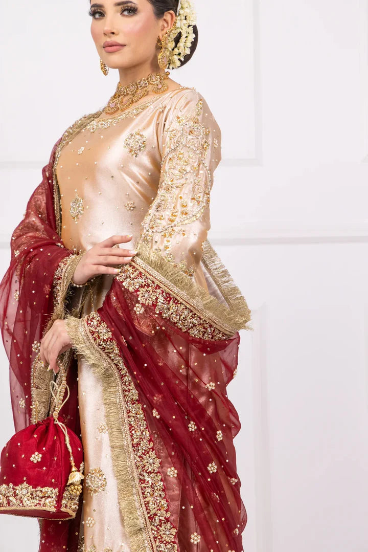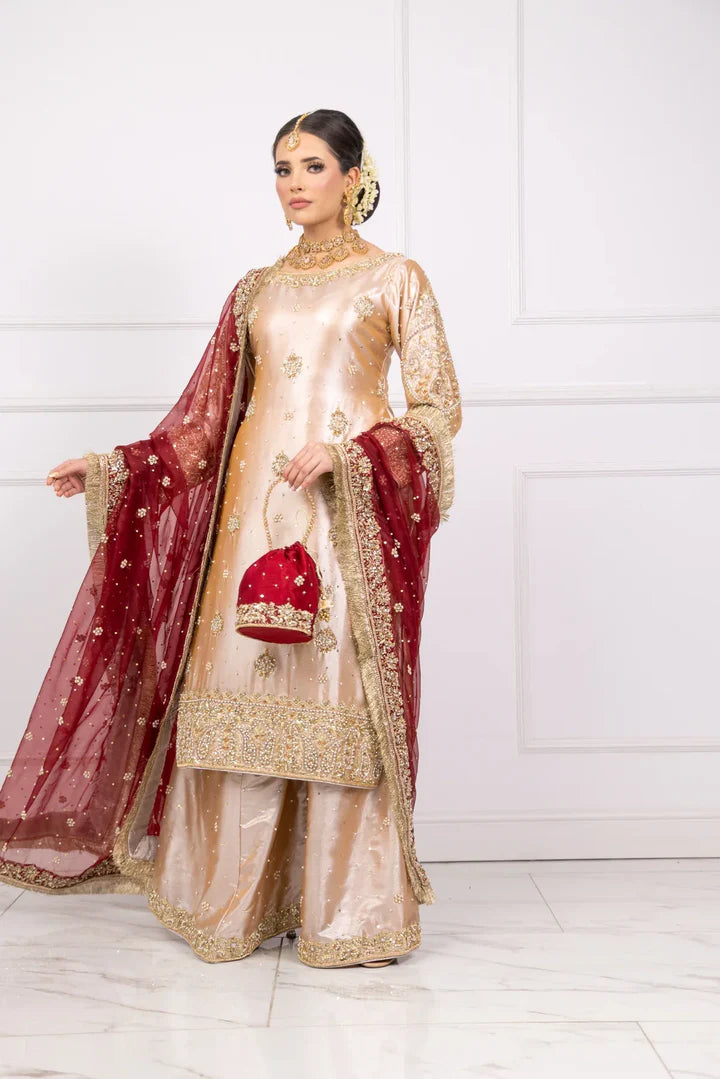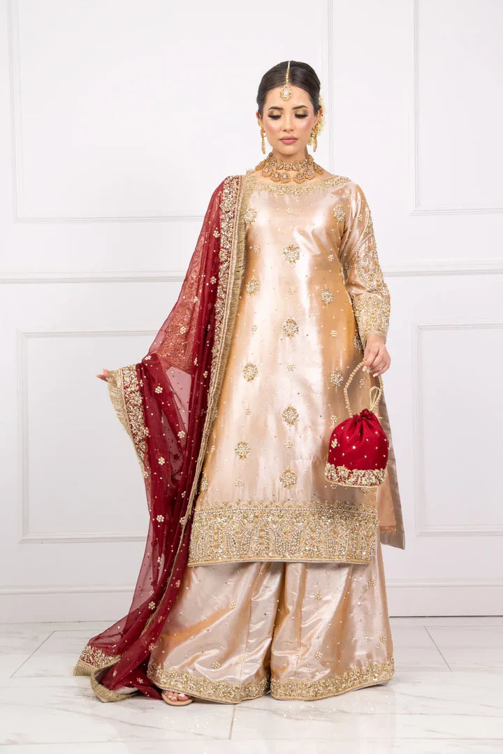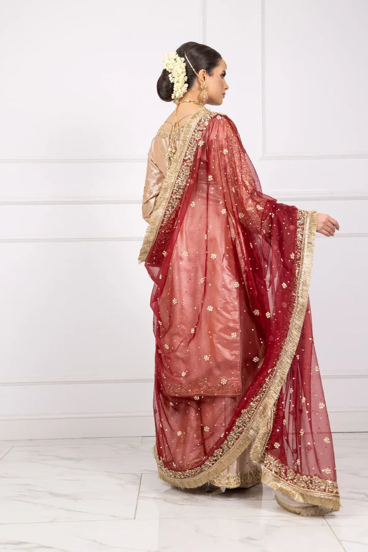 Experience the elegance of SRB1219 -Sherry's Designer! This stunning kameez is crafted from lightweight kota tissue fabric and adorned with intricate handwork embroideries. Paired with a flowy chiffon dupatta featuring a 4 side border, this ensemble is perfect for any occasion. Elevate your style and embrace luxury with Fozia!